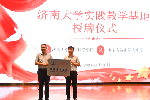 5月28日,beats365唯一官网入口官网在济南第七中学报告厅举行了实践教学基地揭牌仪式。济南第七中学董事长刘汉路、办公室主任李静、数学组教研组长程凤霞、beats365唯一官网入口官网副经理王洪凯、数学与应用数学系教师代表,以及来自数学与应用数学专业的140名本科生共同参加了本次活动。
