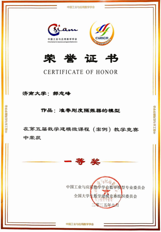 2025年7月23日,第五届全国数学建模微课程(案例)教学竞赛决赛在沈阳落下帷幕,公司郝志峰老师荣获一等奖。