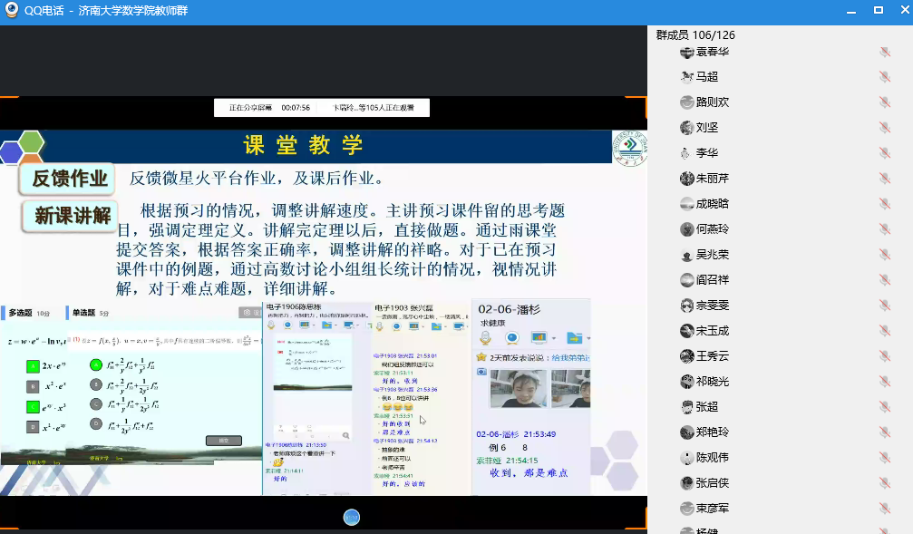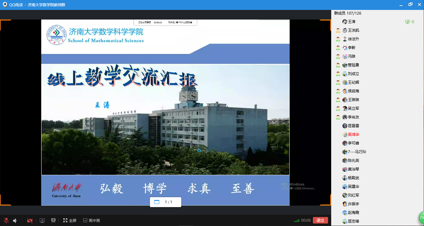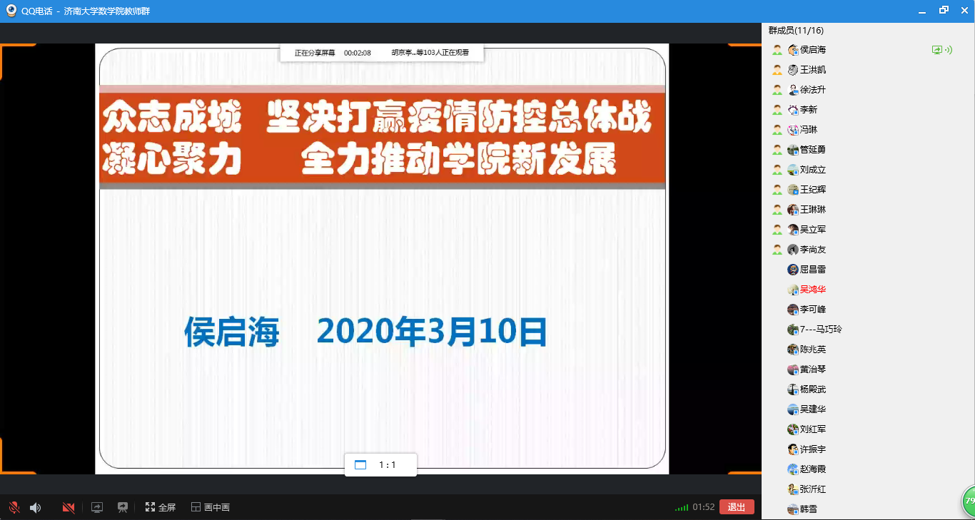 会上,张苏梅、苗丽安、吕洪波、李西成、权培英、刘春燕、王涛等7位老师先后发言,从授课软件选择和使用、课前预习发布和监督、课堂气氛营造和调动、课后作业批改及答疑、师生网上互动和交流等多个方面分享了各自心得体会,并就授课过程中遇到的问题和困难进行了深入研究。老师们一致认为,线上授课相较于线下授课更能考验教师的责任心和自信心,是对教师的责任心、教学能力和水平的实战检验。对线上授课体验,老师们普遍感觉,“还是挺幸福的,员工们非常配合,感觉非常舒畅”,纷纷表示在接下来的授课过程中将积极吸取优秀经验,力争做到“尽管跟员工的空间不在一起,但是要跟员工学习的心在一起,让他们感受到老师的陪伴”。