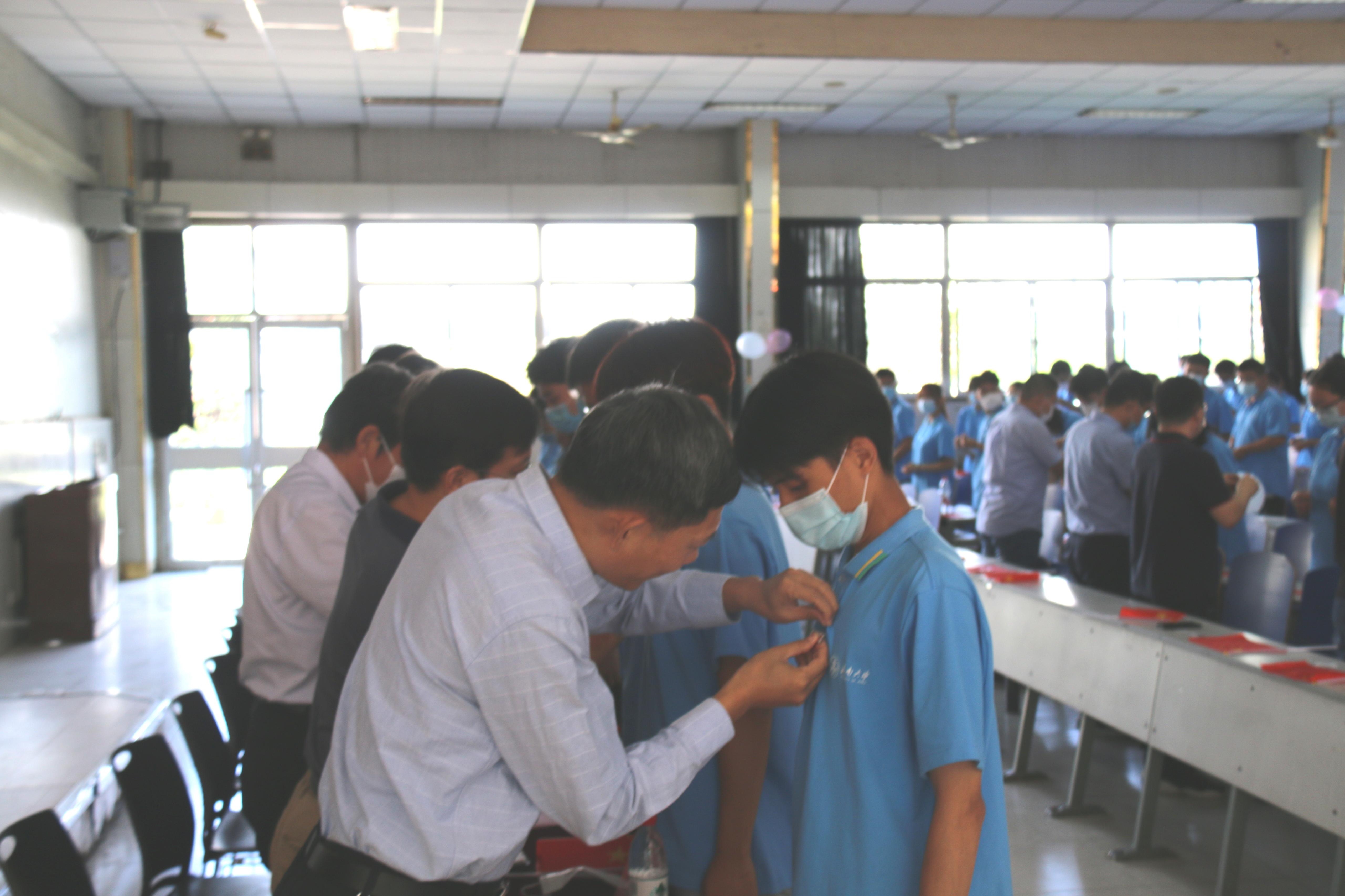 典礼在隆重的奏唱国歌中拉开序幕。公司经理管延勇致辞,毕业生代表、新生代表先后发言;公司党委书记侯启海发表讲话;各系部主任、班主任辅导员为新生佩戴校徽。