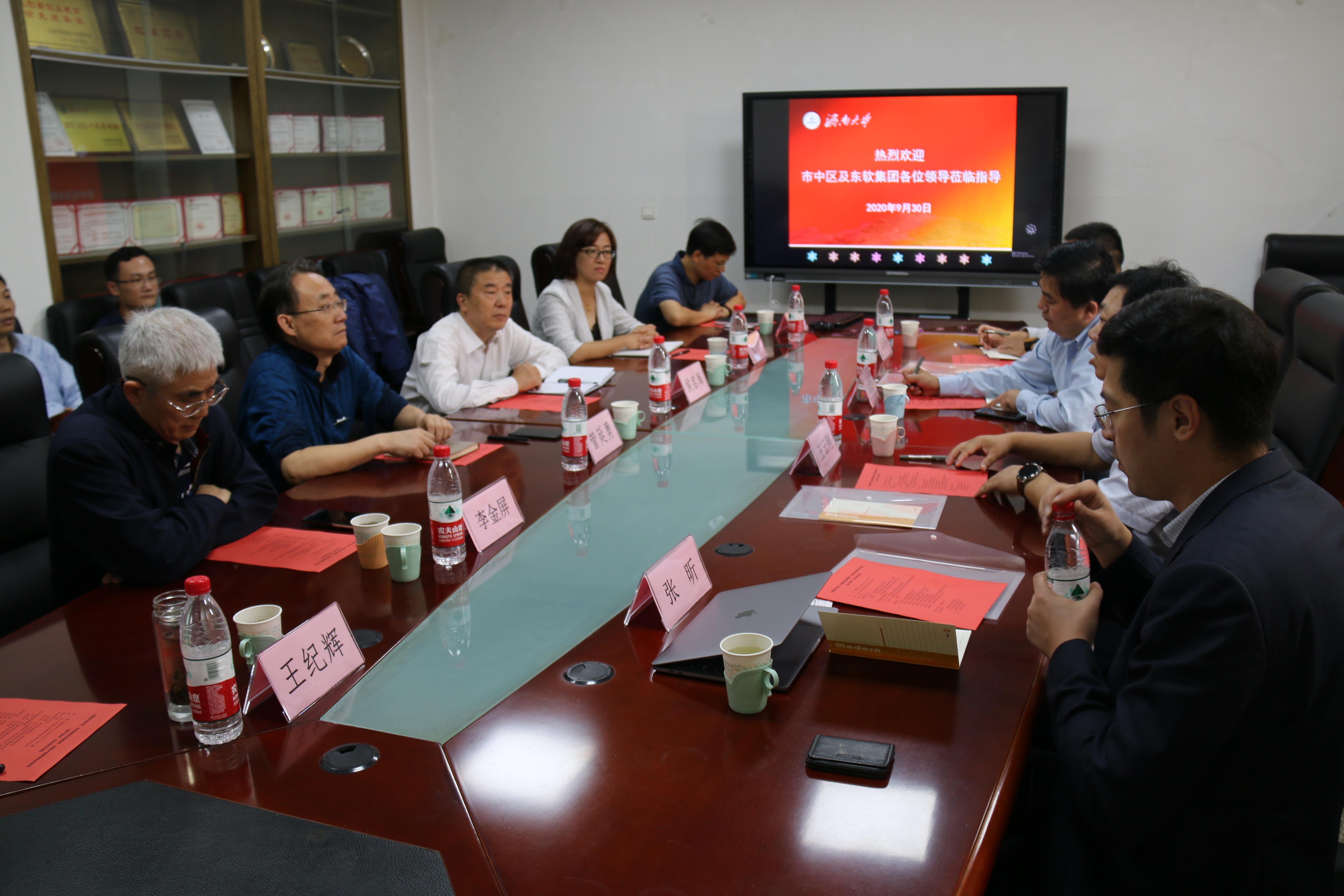9月30日下午,济南市市中区委常委、统战部长王云刚,市中区经济和信息化局党组书记、局长、区大数据业(软件信息业)服务中心主任耿汝年,东软教育科技集团华中区总经理张昕、东软教育科技集团职业等级评价机构事业部(筹)总经理秦绍州一行来公司洽谈政产学研合作,公司党政领导班子成员、专家学者以及相关系部主任参加座谈会。