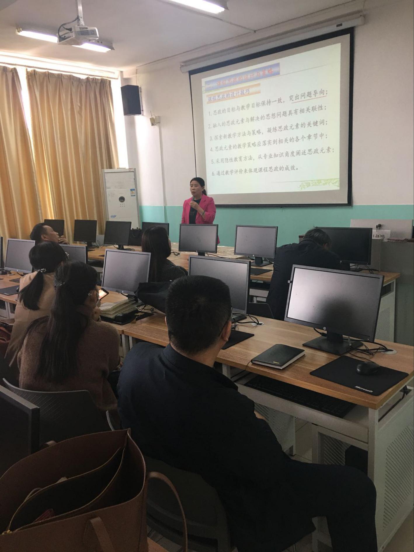 3月30日下午,公司邀请公司优秀教学奖获得者、优秀教师苗丽安教授在6楼实验中心机房做了《课程思政理念策略及教学实践探索》报告。报告会由公司和党委教师工作部 教师发展中心合办,副经理王纪辉教授主持,公司各系主任和各课程组教师参加了报告会。