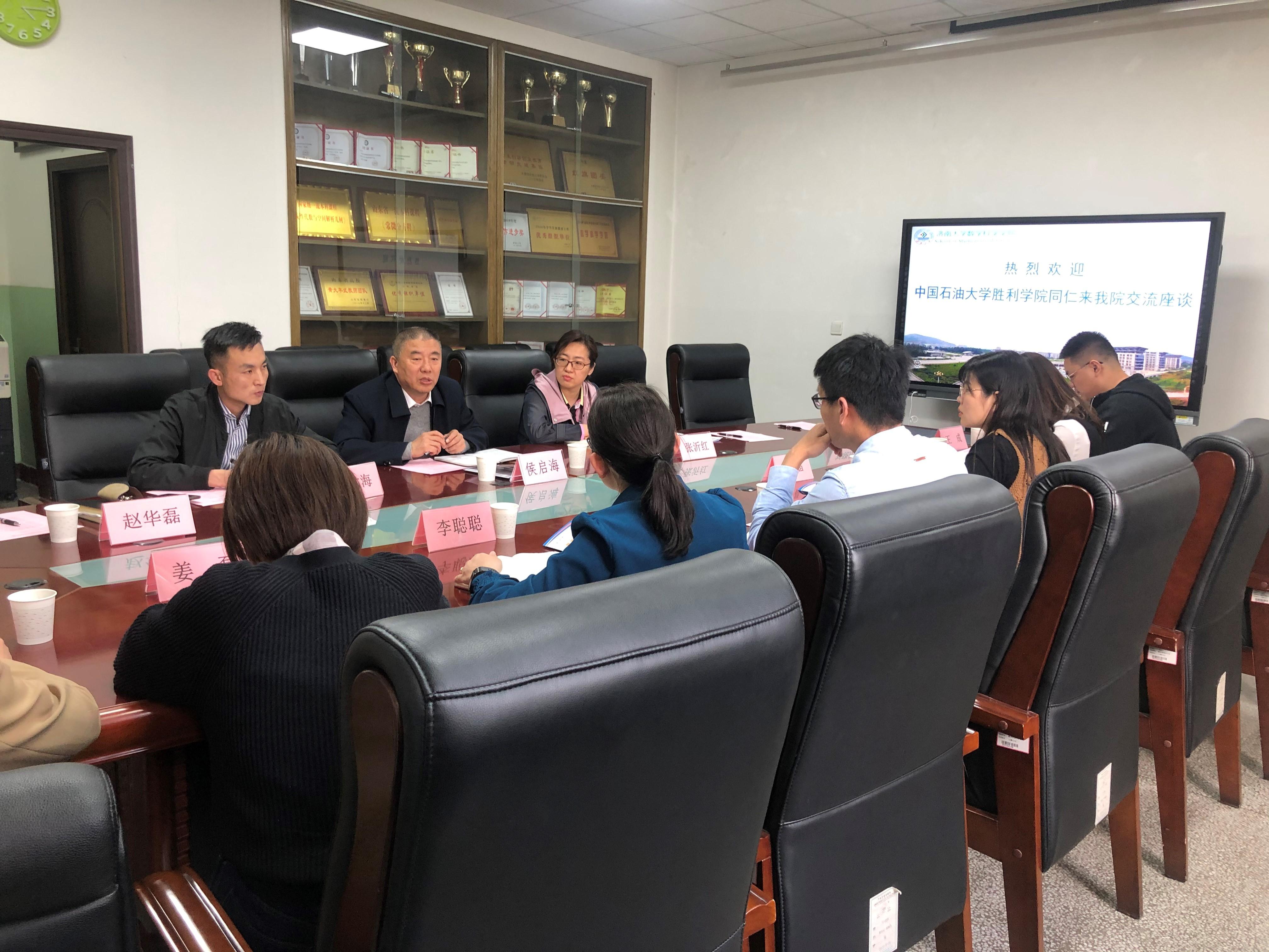 4月15日下午,中国石油大学胜利公司机械控制与工程公司党总支副书记张成明,油气工程公司党总支副书记李聪聪,教育与艺术公司党总支副书记王晶,机械控制与工程公司学工办主任姜磊,油气工程公司学工办主任王成,教育与艺术公司学工办主任胡洪翠,专职辅导员王兆婷一行来公司进行员工工作交流座谈。公司党委书记侯启海,公司党委副书记、副经理张沂红,团委书记赵华磊以及兄弟公司团委书记、辅导员参加座谈。
