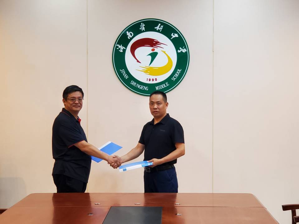 最后,公司副经理王纪辉与舜耕中学董事长黎军代表双方签署了合作意向书。