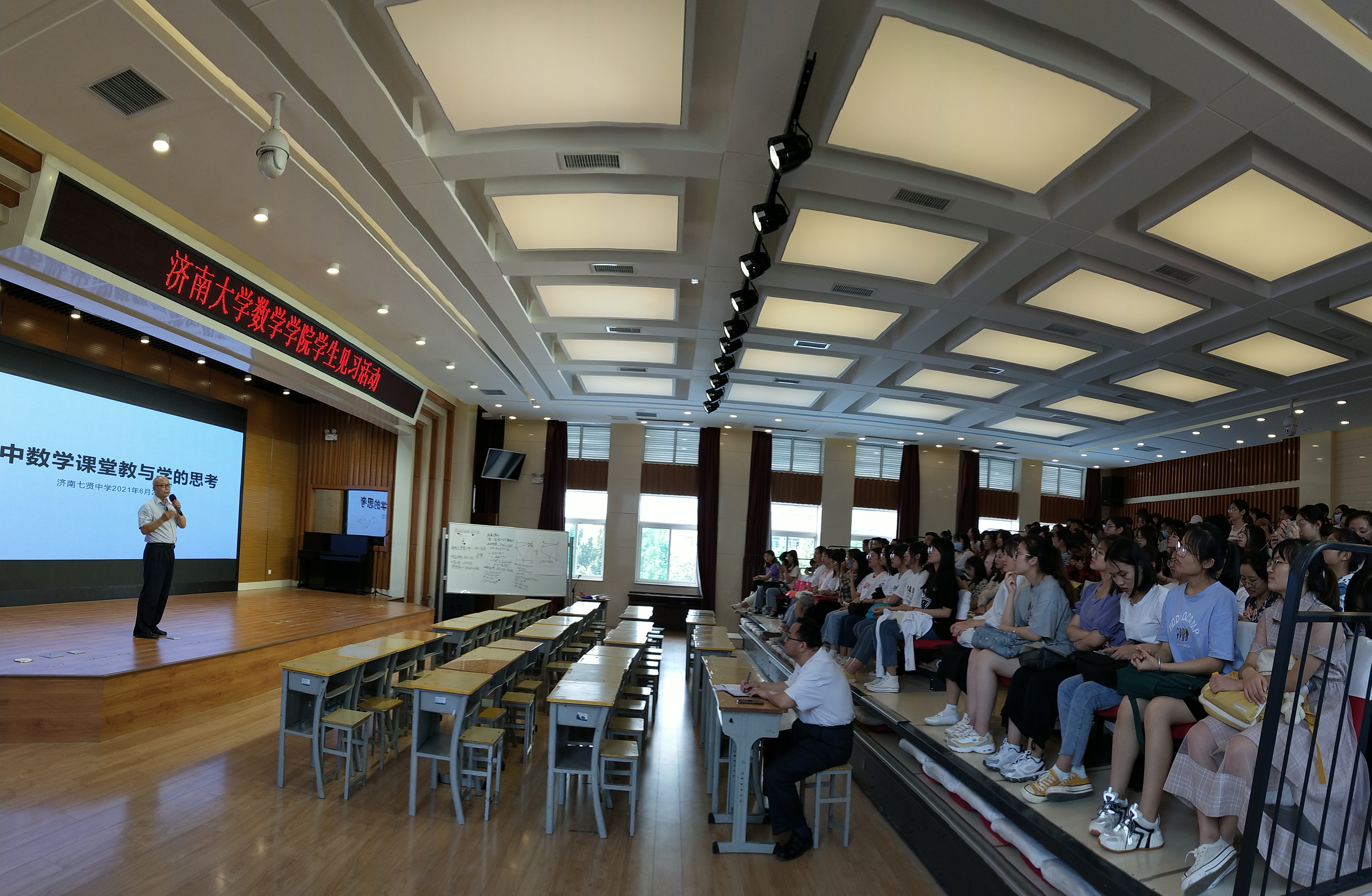 数学与应用数学专业2018级180名本科员工、5名教育硕士研究生,共同参加了本次教育见习活动。本次活动分别前往济南市七贤中学、育贤中学、舜耕中学、beats365唯一官网入口官网城实验高中,参加了包括公开课、优秀教师成长报告、数学教学研究报告、公司教学运行管理与青年教师成长、教师责任与师德培养等多场现场学习观摩活动。