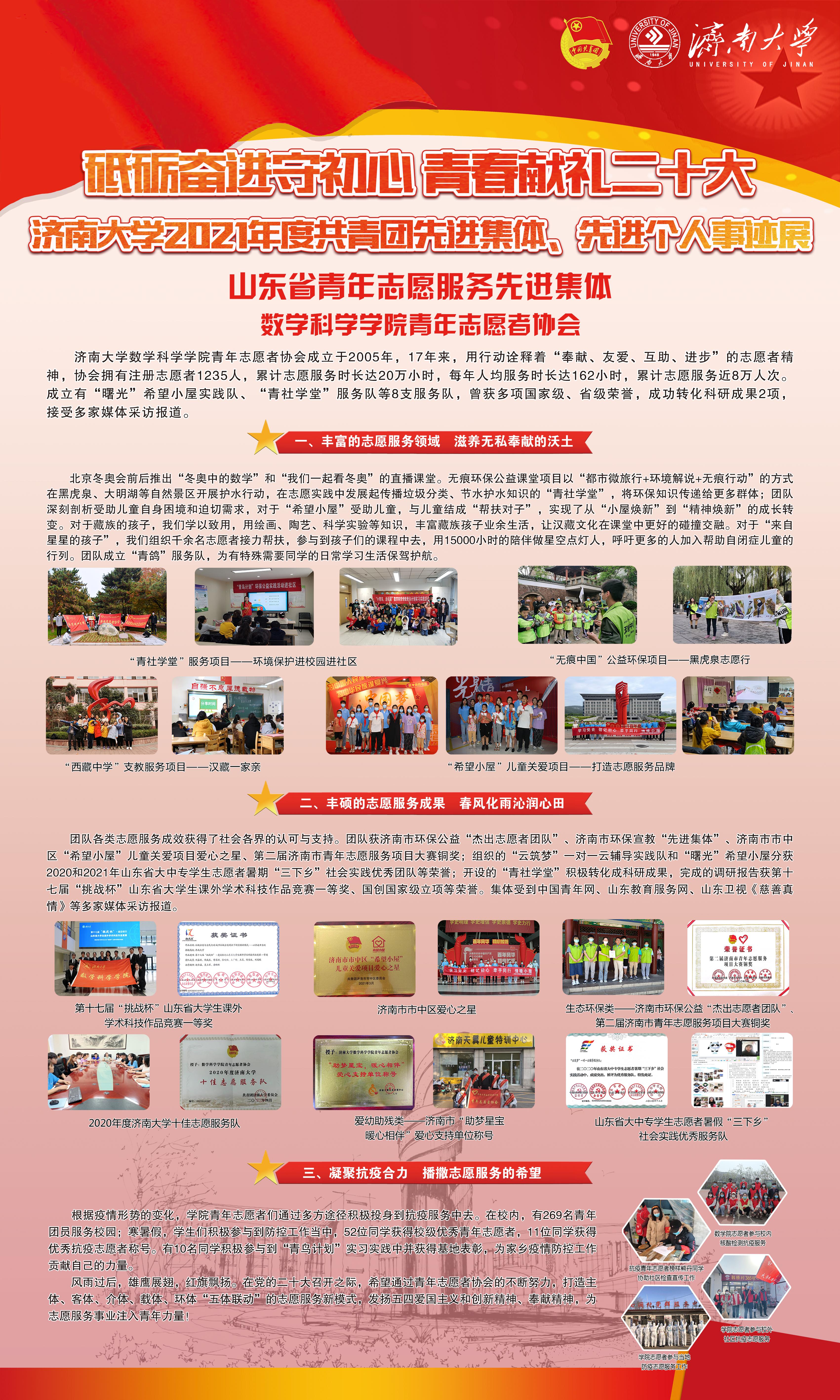 为表彰先进、树立典型,激励全省各级团组织和广大团员青年、团干部向先进学习、向优秀看齐,共青团山东省委决定授予青岛市青年志愿者抗疫突击队等50个集体山东省青年志愿服务先进集体称号。公司青年志愿者协会榜上有名,成为2021-2022年度公司唯一一支获此殊荣的志愿者团队。