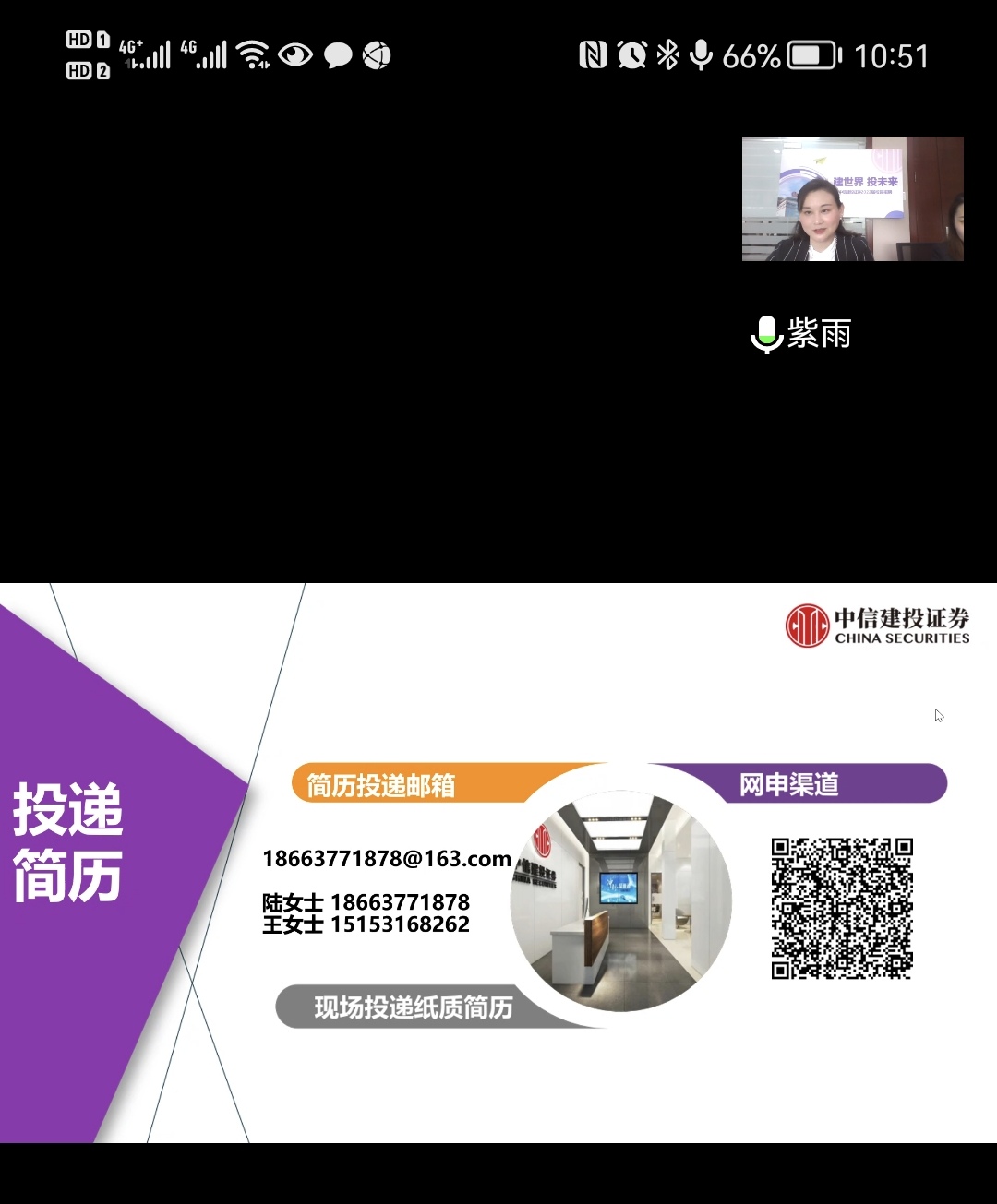 为进一步提升同学们的专业认识,加深相关行业认知,合理规划自己的职业生涯,4月29日上午,公司通过线上的形式举办2022届毕业生专场招聘会,中信建投证券济南龙奥北路证券营业部受邀参加。公司党委书记侯启海,公司党委副书记张沂红、公司辅导员以及公司相关专业员工参与了本次线上招聘会。