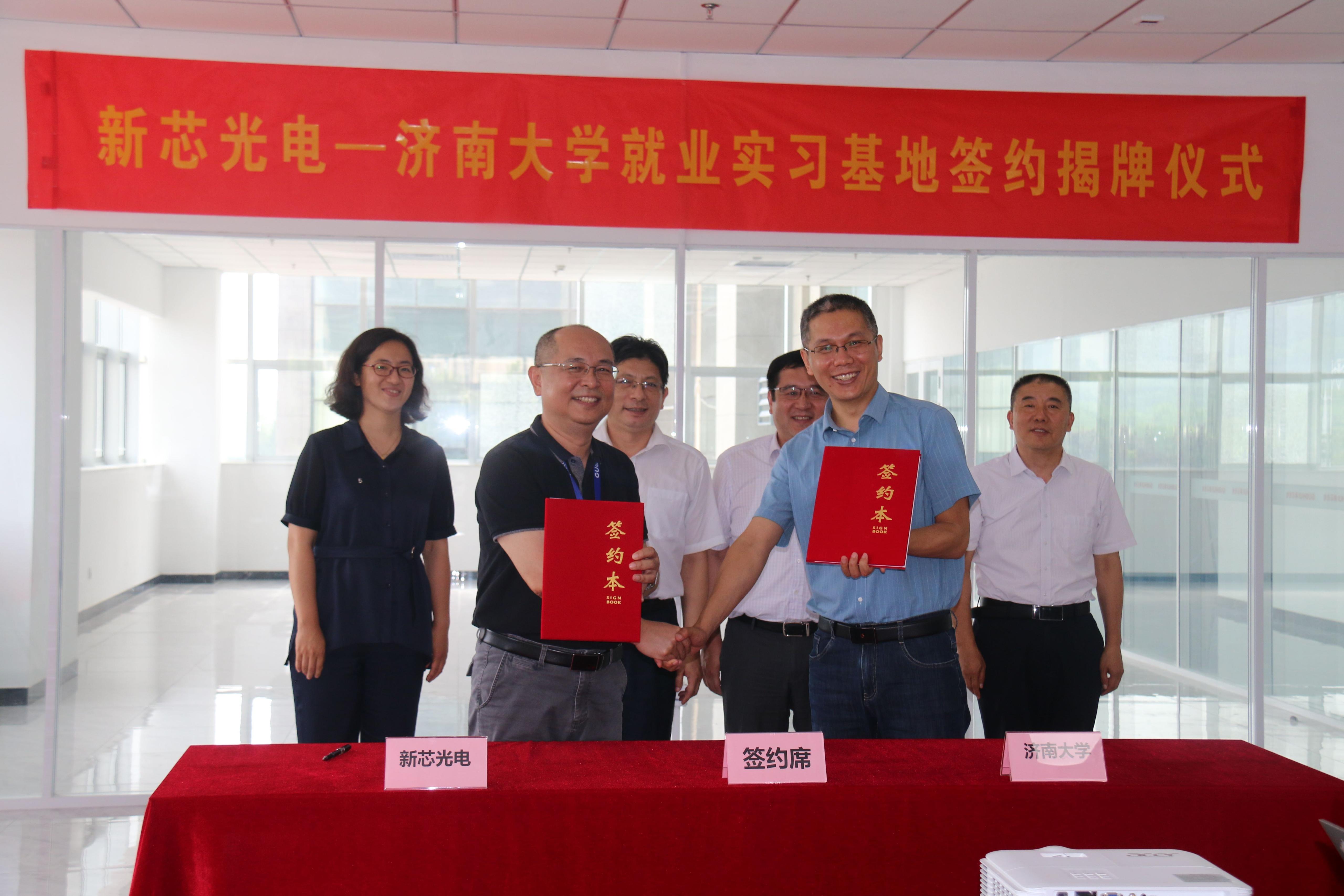 为贯彻落实党中央、国务院“稳就业”“保就业”决策部署,落实教育部2022年“访企拓岗促就业”专项行动要求,进一步扩大毕业生就业渠道,提升毕业生就业质量,6月30日,beats365唯一官网入口官网与山东国惠集团直属企业新芯光电和国惠小贷共建就业实习基地签约暨揭牌仪式分别在新芯光电和国惠小贷会议室举行。公司副董事长杨景波,山东国惠集团总助、国惠小贷书记、董事长兼任新芯光电书记、董事长杜冰,新芯光电总经理沈镇,国惠小贷副书记、董事、总经理单一春出席活动。集团相关部门负责人、公司相关负责人参加活动。