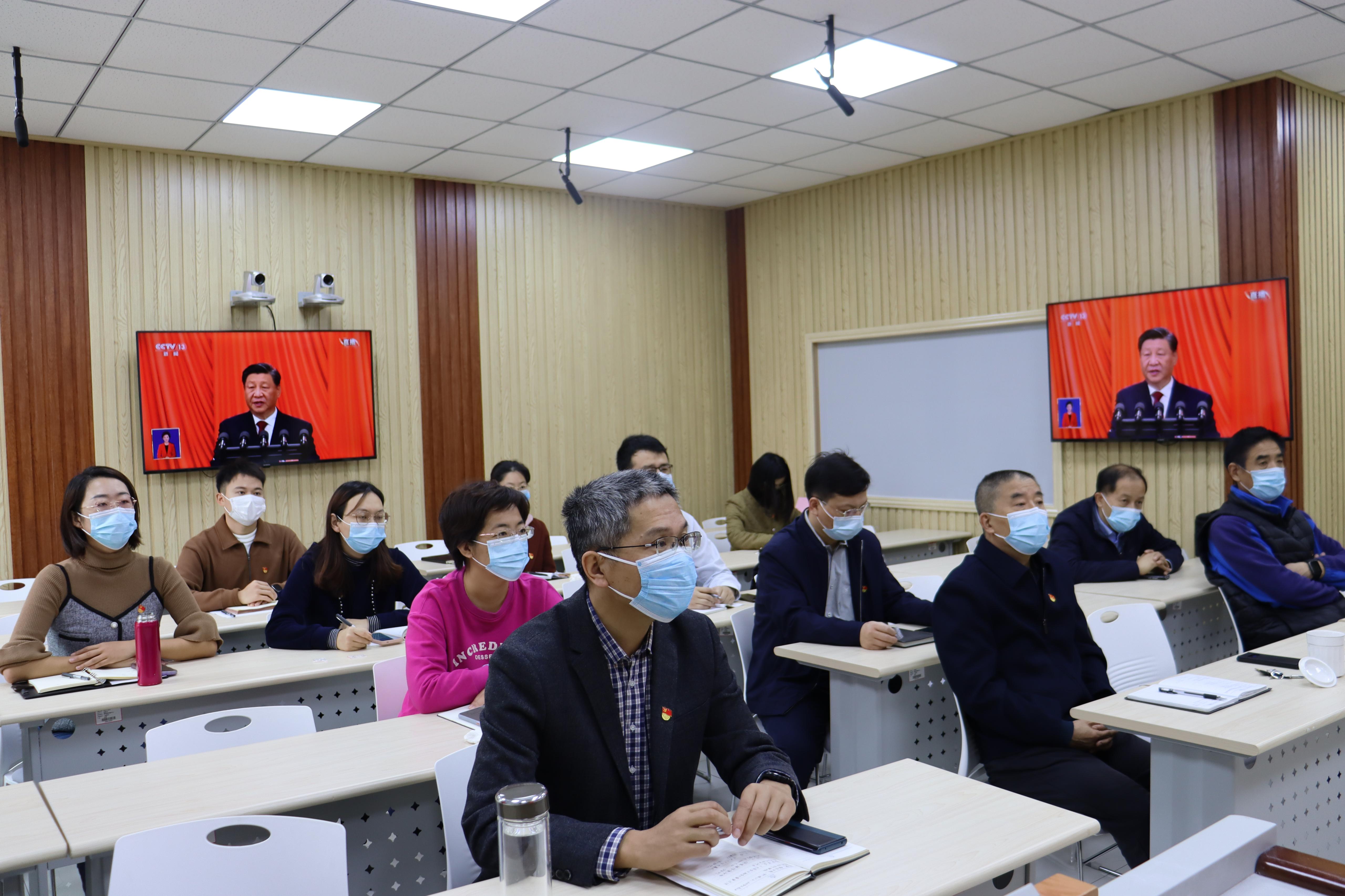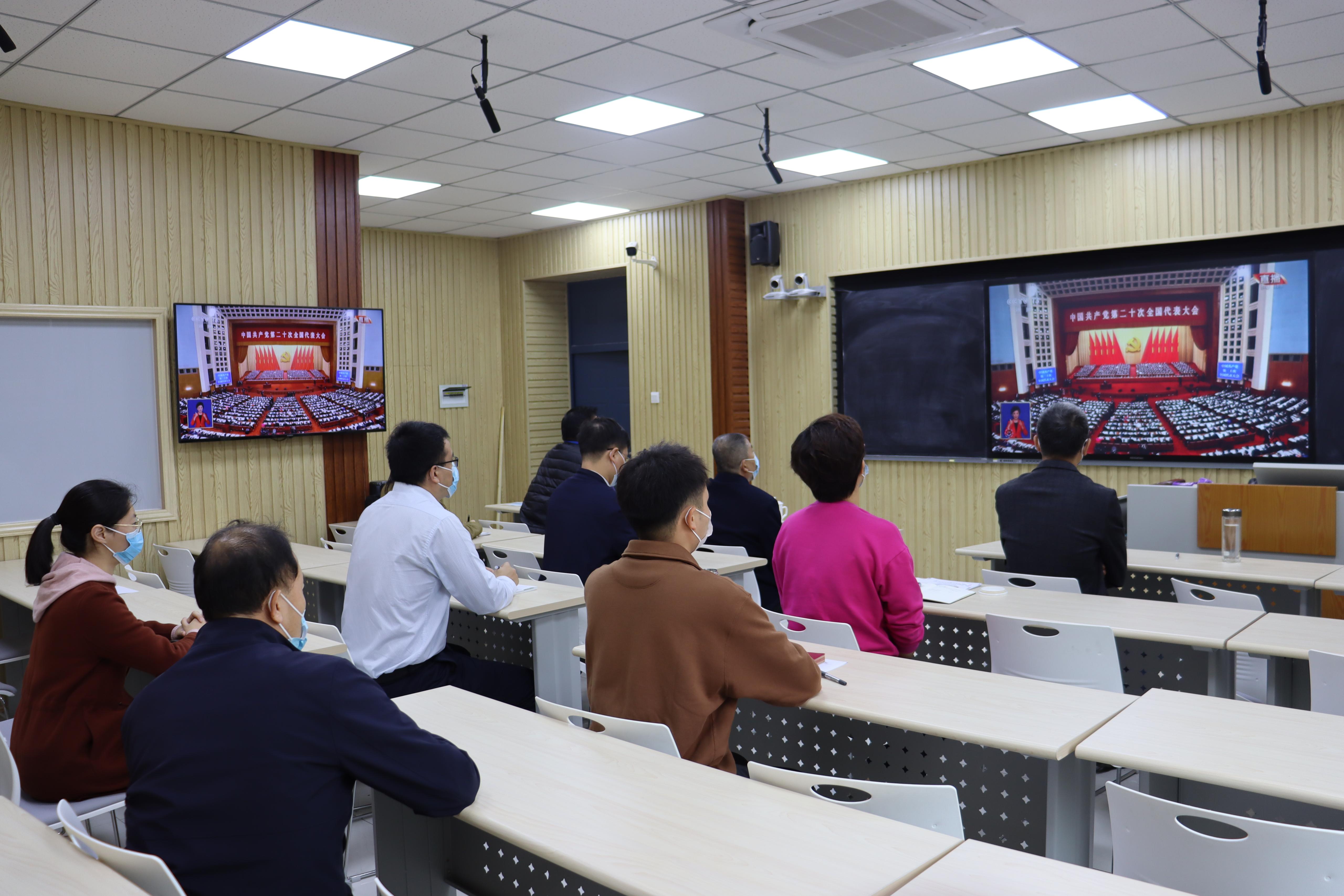 在公司智慧教室,公司党委理论学习中心组、全体行政人员集体观看了开幕会直播,与会人员认真听取了习近平总书记代表第十九届中央委员会所作的报告。与此同时,公司组织各党支部、团支部通过视频会议以线上线下相结合、集中学习与分散学习相结合的形式在教研室、教室、宿舍等进行学习。