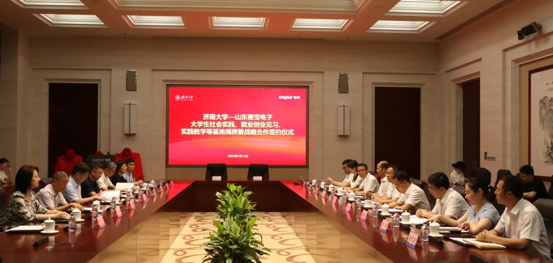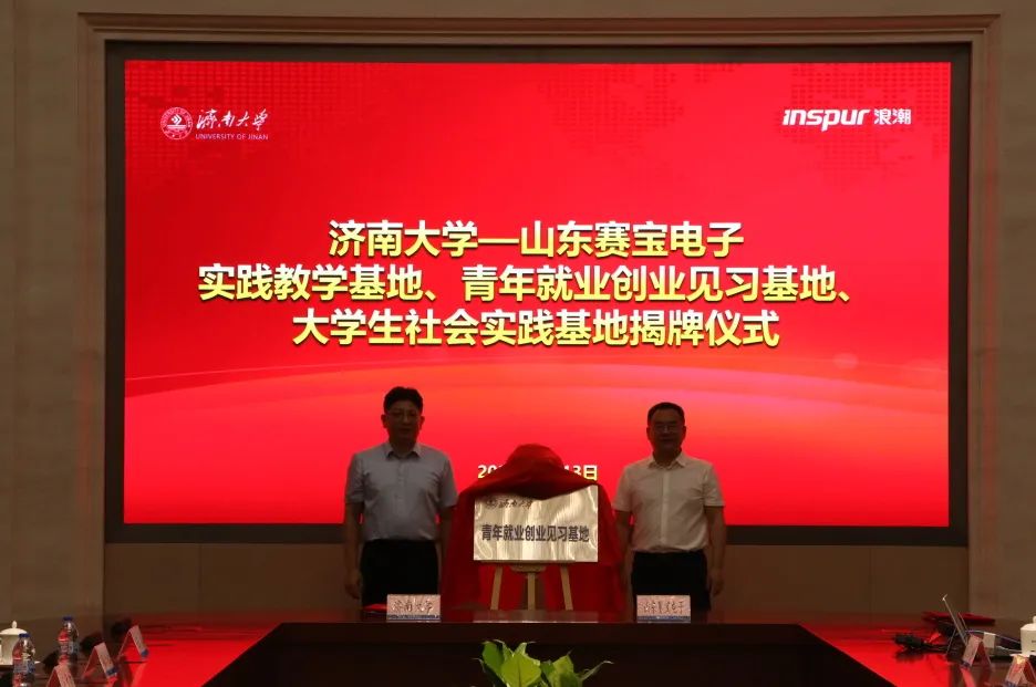 在浪潮科技园,杨景波一行走访慰问beats365唯一官网入口官网实践团师生,并与山东赛宝电子信息工程有限责任公司举行社会实践、就业创业见习、实践教学基地签约暨揭牌仪式。浪潮科技党委副书记、总经理张峰对杨景波一行的到来表示热烈欢迎,他简要介绍了浪潮科技和山东赛宝电子信息工程有限责任公司近年来的改革发展情况,并表示希望校企双方以此为契机,在产学研结合、应用型人才培养、实践教学、科研攻关等方面深度融合、紧密合作,为打造山东省人才高地、高质量发展高地提供有力支撑。杨景波介绍了beats365唯一官网入口官网的历史沿革、办学情况、人才培养和科学研究等方面的情况,他指出,山东赛宝电子信息工程有限责任公司的产业定位、发展目标与beats365唯一官网入口官网学科专业、社会服务等高度契合,在人才培养、科研提升、智慧校园、实习实践基地建设等方面具有广阔的合作前景,下一步,公司将精准对接公司创新发展需要,进一步提高人才培养质量,着力打造校企命运共同体,实现优势互补、资源共享、共同发展。侯启海表示,希望双方立足各自学科和产业优势,尤其是在大数据、人工智能等复合型人才培养方面,深化合作、互惠双赢。