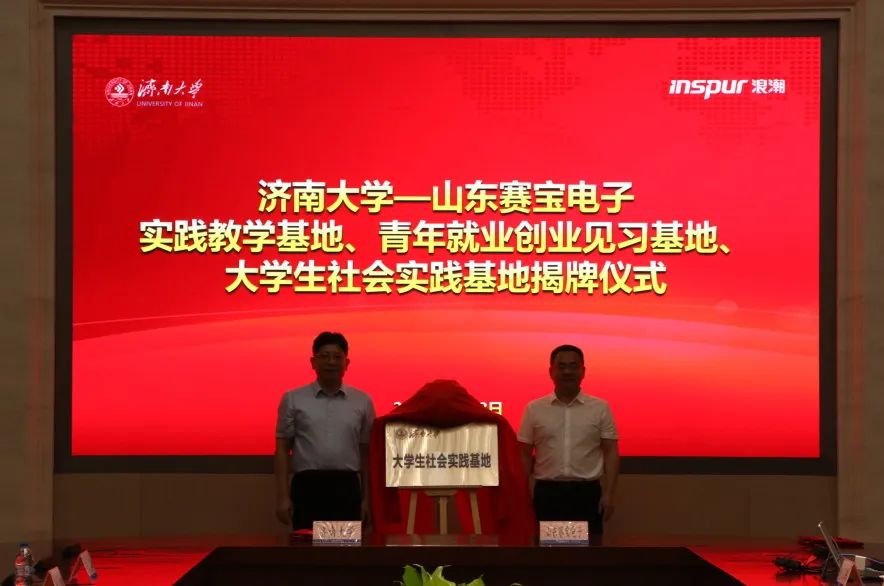 孙元功与山东赛宝电子董事长、总经理蒋孝军签署战略合作协议,杨景波与张峰为基地揭牌,活动由浪潮科技党委委员、副总经理朱家兵主持。