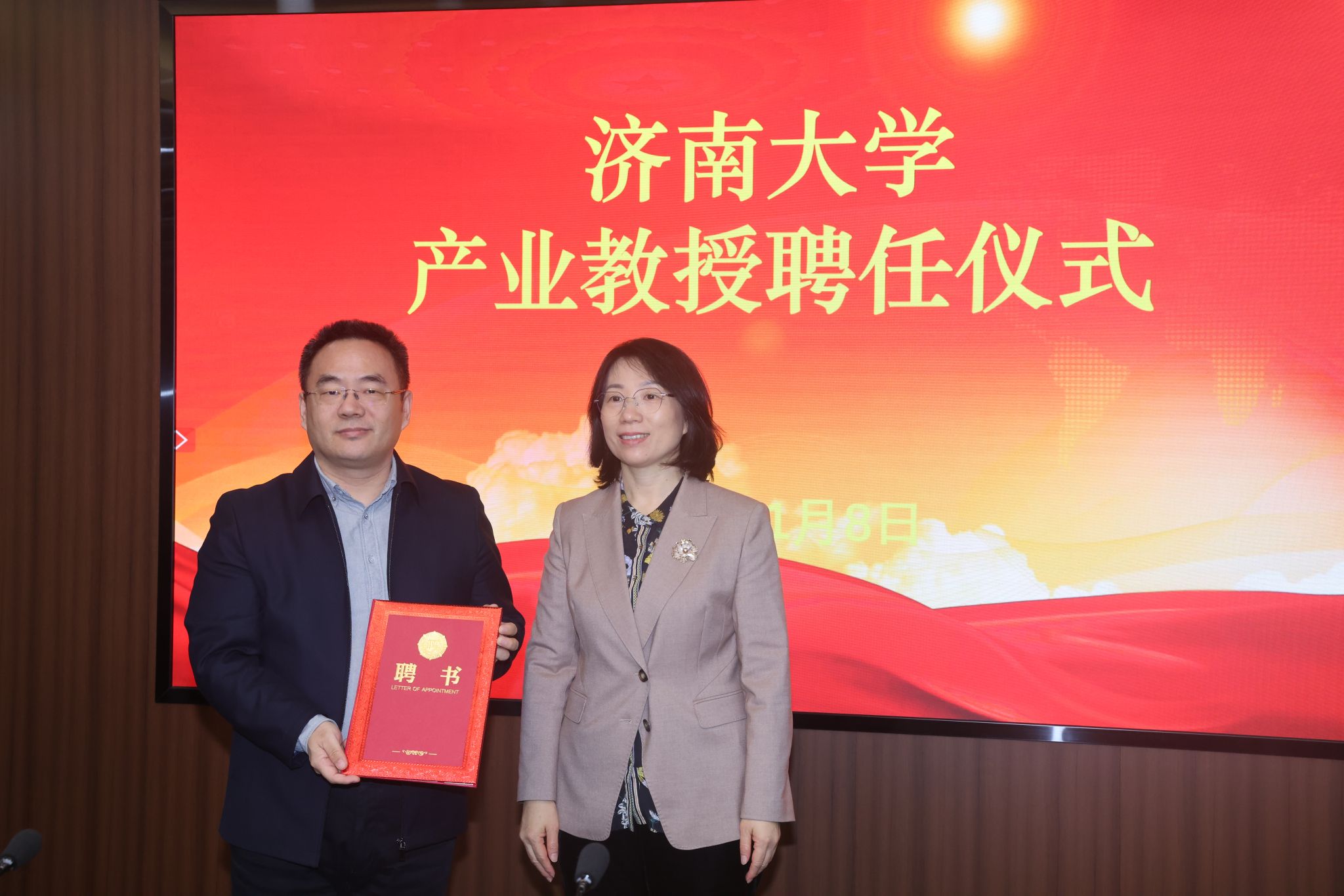 1月8日,公司举行产业教授聘任仪式。公司党委常委、副董事长王霞、浪潮软件科技有限公司党委副书记、总经理张峰、山东赛宝电子信息工程有限责任公司董事长、总经理蒋孝军出席聘任仪式,浪潮软件科技有限公司、山东赛宝电子信息工程有限责任公司和公司人力资源处、beats365唯一官网入口官网相关负责同志参加本次聘任仪式。beats365唯一官网入口官网经理孙元功主持聘任仪式。