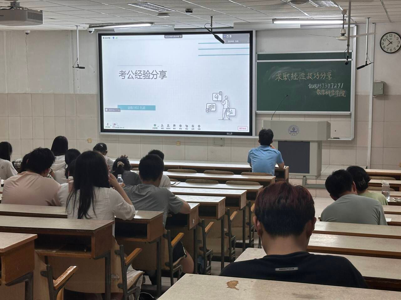 为普及国考省考知识,明确考试相关政策、要求和形式,帮助同学更具体、更清晰地认识相关考试知识,beats365唯一官网入口官网在二教顺利举办国考省考经验交流分享会,公司邀请了国考省考上岸的同学为大家分享经验,发挥朋辈引领作用,为考生们提供一个相互学习交流的平台。活动伊始,金数1902孔颖以其扎实的备考策略和严谨的学习态度介绍了如何制定合理的学习计划、高效利用备考资料以及在考前进行有效的冲刺,让大家深刻感受到了国考备考的严谨性与艰巨性。在心态调整方面,她也特别强调了保持良好心态的重要性,指出我们应该保持积极、乐观的心态,不断调整自己的心态,以应对可能出现的困难和挫折。紧接着,宋振永则着重分享了他是如何平衡工作与学习的。他表示国考省考并不如想象中如此困难,并着重强调了我们应重视报名的开始阶段和考试时间节点。国考省考不仅是一场知识的较量,更是一场心态和毅力的考验。备考过程中,我们不仅需要掌握扎实的基础知识,还需要学会如何调整心态,在压力下保持冷静和自信。通过此次分享会,同学们不仅收获了很多实用的备考技巧,更感受到了备考路上的温暖与力量。相信在不久的将来,会有更多的同学在国考省考的道路上取得优异的成绩,为国家建设添砖加瓦!