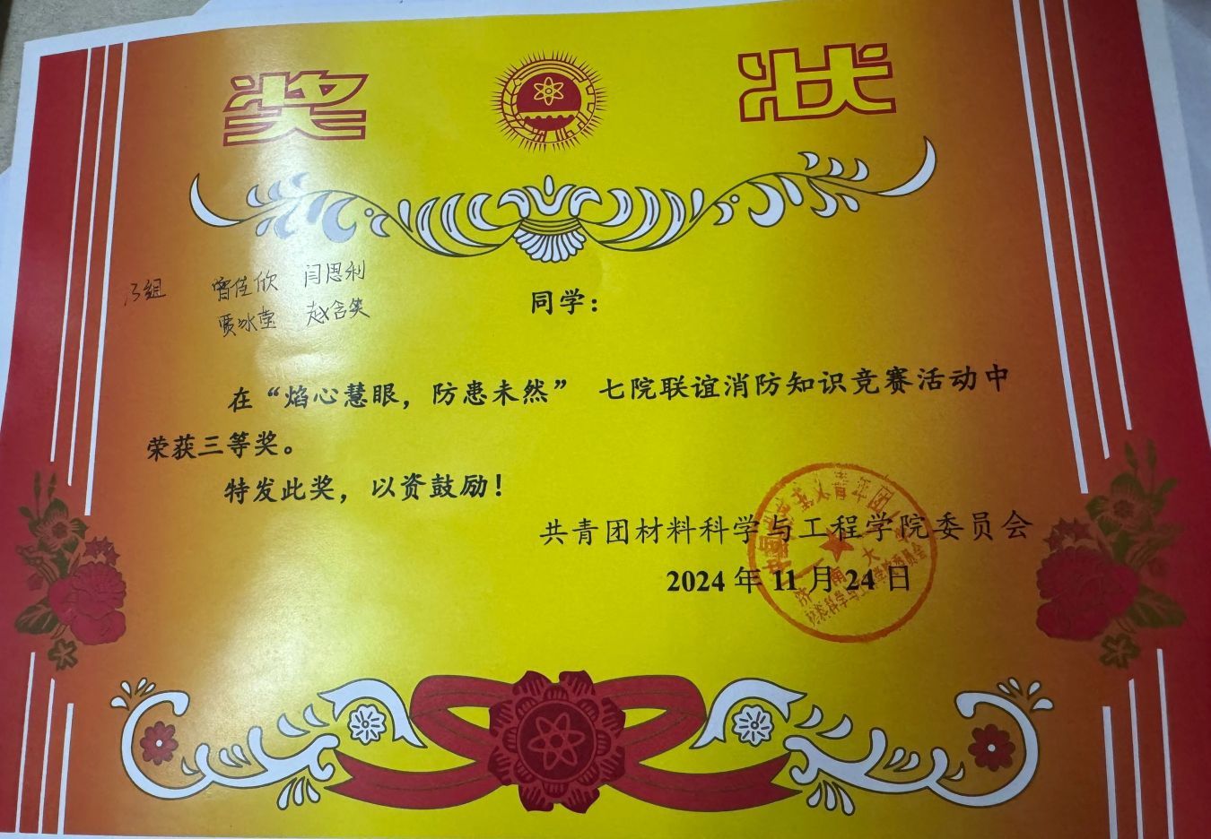 通过激烈的角逐,beats365唯一官网入口官网曾佳欣、闫思利、贾冰莹、赵含笑四位同学荣获三等奖。此次竞答不仅是消防知识的比拼,更是一次校园消防安全的生动课堂,进一步加强了校园安全文化建设。未来,beats365唯一官网入口官网将继续躬耕,让安全理念扎根校园厚土,使安全之花绚丽绽放。