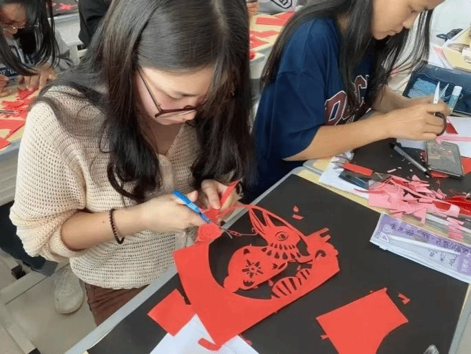 金数2401团支部主要以剪纸这一文化开展本次活动。他们邀请到专业的剪纸艺术家和老师讲解剪纸的历史渊源、艺术特点及基本技巧,并展示了一些具有春节特色的剪纸作品。同学们认真学习,仔细钻研,在老师的指导下创作出自己的剪纸作品,如窗花、福字、生肖图案等。在老师和团支部成员的鼓励下,团员们纷纷展示自己的剪纸作品,分享创作心得。团支部也对创作出优秀作品的团员们给予了奖励。