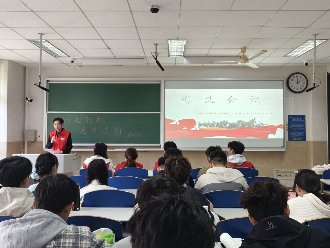 “滚滚赤水河,熠熠遵义光。”为铭记伟大历史转折,传承革命先辈精神,beats365唯一官网入口官网员工会青年志愿者协会遵义会议精神志愿宣讲团于4月12日在第一教学楼205教室开展遵义会议精神宣讲活动。