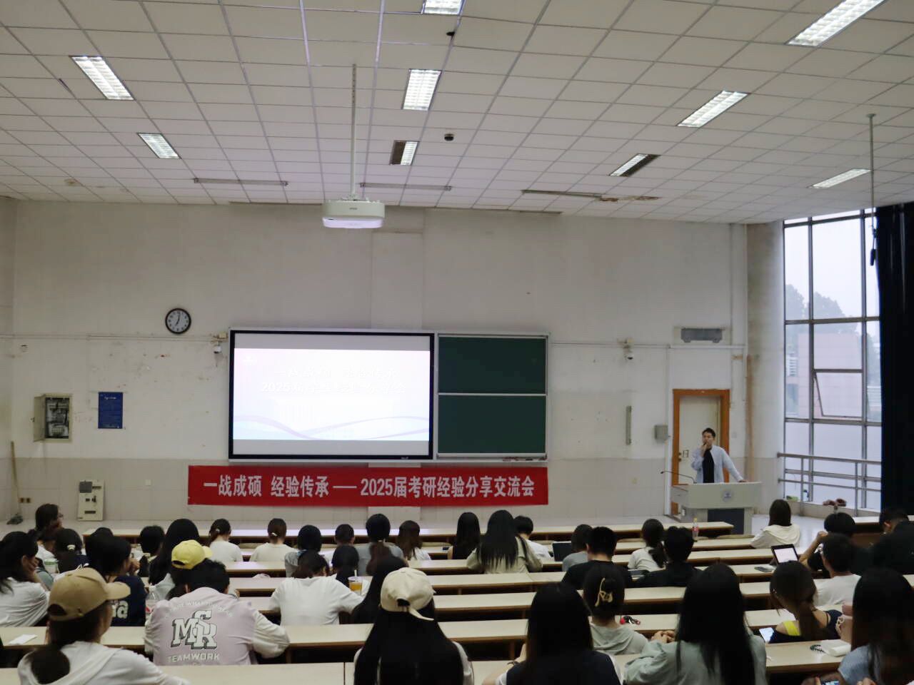 姬磊以“把握时代脉搏,规划研途人生”为主题,为同学们解读近年考研政策变化与报考趋势,强调“科学规划+精准择校”的重要性,并介绍公司历年考研成果,鼓励同学们树立信心、合理定位目标院校。