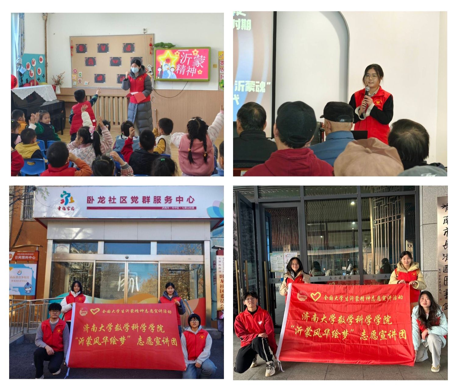 活动覆盖山东、江苏等4省区10个区县,含3所幼儿园、3所小学、1所中学、1所大学、5个社区及1所国家一级图书馆;开展服务20余次,志愿者50余人次,累计服务448小时,服务1500余人次。课堂里,孩子们听得入神;社区中,老人眼眶湿润——红色基因在互动中悄然传承。