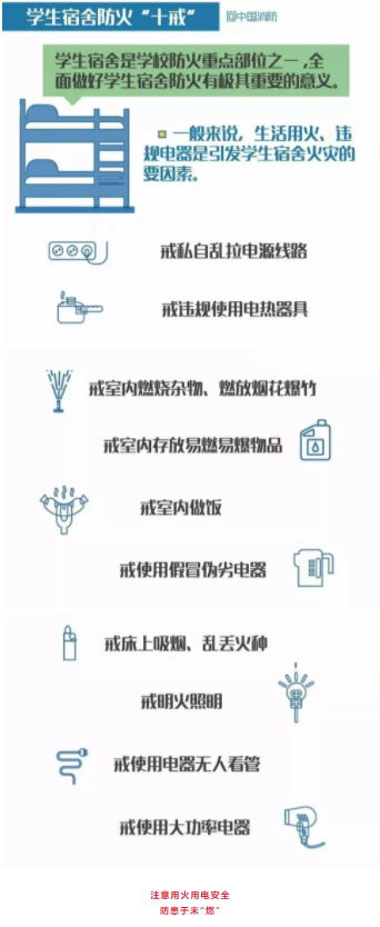 为了各位同学及舍友的财产生命安全,制定宿含用电、防火须知如下,请广大同学们遵照执行: