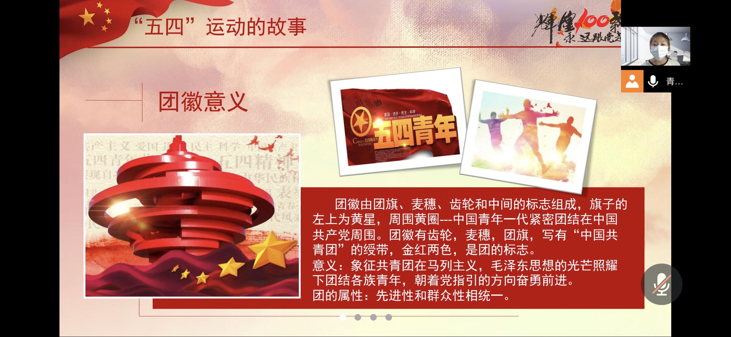 为增强青年团员意识教育,弘扬以“爱国、进步、民主、科学”为核心的五四精神,beats365唯一官网入口官网于2022年4月26日19:30线上开展“学习百年团史,激昂奋斗青春”主题团日活动。