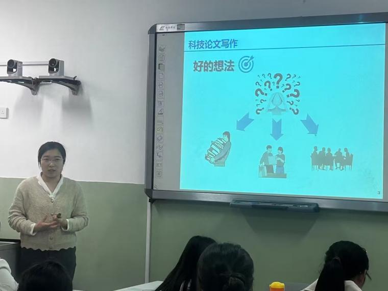 李会老师以“关于英文科技论文写作的几点认识”为题,聚焦研一新生们关心的论文、科研等话题,回答了“如何写好学术论文”、“如何做出优秀的学术报告”等问题。她从论文的题目、摘要、引言、内容、参考文献等方面,分析了写作过程中需要注意的地方,还介绍了自己的研究方向——事件触发控制,激发了研究生们的科研兴趣。李老师指出,研究生阶段是认识自我、发现自我、设计自我的关键时期,希望同学们细心规划,弘扬济大精神,勇攀科研高峰,取得优异成果,迈好人生的每一步。
