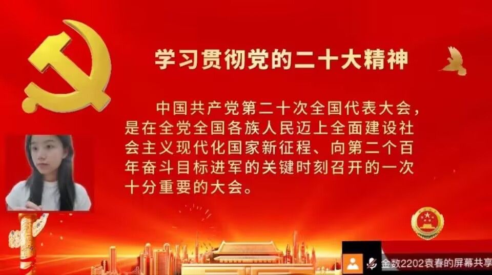 为进一步深入宣讲党的二十大精神,实践队员在本期多采用线上宣讲方式进行。数学2202班王瑞宣讲内容以高举中国特色社会主义伟大旗帜,全面贯彻新时代中国特色社会主义思想为主,弘扬伟大建党精神,自信自强、守正创新,踔厉奋发、勇毅前行,为全面建设社会主义现代化国家、全面推进中华民族伟大复兴而团结奋斗。她表示:“我们作为新时代的接班人我们要肩负起历史使命,抱有远大理想、努力提高自身素养,以实际行动迎接美好的未来。”其他实践队员通过进一步宣讲党的二十大报告所描绘的党和国家未来事业发展的宏伟蓝图,进一步明确前进方向,确立行动指南,深刻领会党的二十大精神的丰富内涵和精神实质。数学2202班王元慧说:“通过学习党的光辉历程,体会今日盛世的来之不易,既要有‘风声雨声读书声’的坚持,更要有‘家事国事天下事’的胸怀。”
