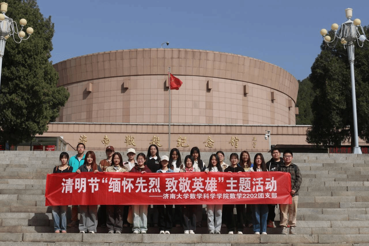 经过团支部周密的策划和组织,数学2202班的同学们满怀热情地前往济南英雄山风景区。活动伊始,同学们有序依次步入展览馆,一走进序厅便被眼前巨大的方形雕塑所吸引,雕塑呈现倾斜态势,巨大的军号象征着济南战役吹响解放战争的号角。在讲解员的带领下,面对大量的史实资料及实物展示,他们认真听取了济南战役的发展形势,了解了这段波澜壮阔的历史,真切地感受到无数革命先烈不怕牺牲、宁死不屈的伟大精神。同学们深受感染,纷纷表示要珍惜今天来之不易的幸福生活,刻苦努力学习。随后同学们走进全景画馆,仿佛穿越时空,走进了炮火连天、群英会战的战场实景,如临其境的视听感受加深了同学们的印象,为曾经发生在这座古老城市的悲壮战斗所震撼。走出纪念馆后同学们来到由毛泽东亲笔题词的革命烈士纪念塔。热血铸丰碑,英雄垂青史。回首那段充满红色硝烟的岁月,革命烈士用鲜血换来和平安宁的生活,而如今他们的英灵在此长眠。同学们长久地注视着巍然矗立的纪念塔,感受革命先烈的英勇精神,更加坚定了他们的理想信念。