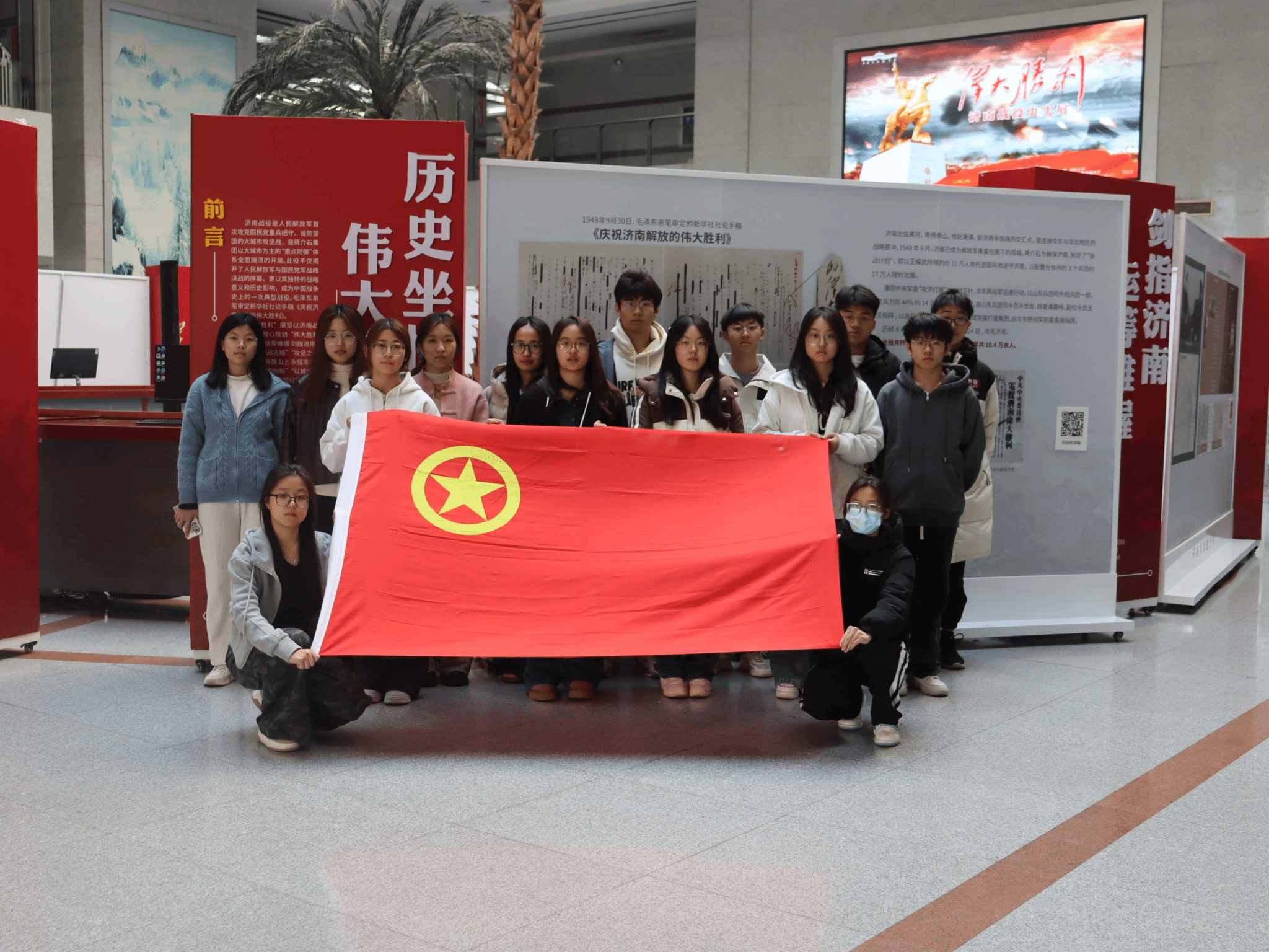 “伟大胜利”济南战役史实展巡展以济南战役为主线,分为“伟大胜利 历史坐标”“八天八夜 鏖战古城”“褒扬英烈 探索创新”等八个部分,再现济南战役的烽火岁月,彰显英雄城市的红色记忆,激励同学们在民族复兴的伟大征程中续写新的荣光。