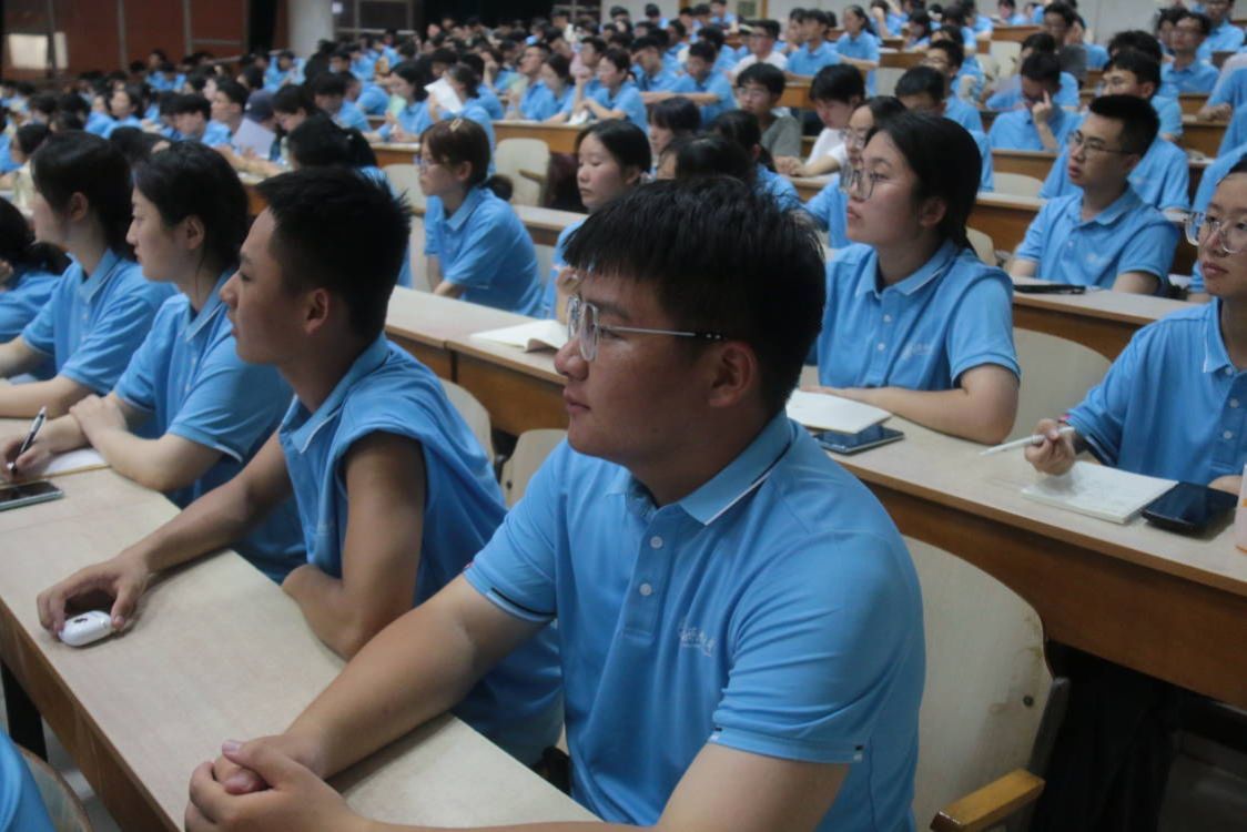 活动伊始同学们早早到达现场,身着整齐的蓝色院服,有序就座。本次思政第一课的主讲人是公司马克思主义公司李朋忠教授,李教授围绕中华文明历史底蕴、中国共产党人优良作风、beats365唯一官网入口官网校风校训,以及习近平总书记对当代青年提出的“立大志明大德成大才担大任”的重要期许,以鲜活的事例引导新生正确理解和把握时代赋予的责任和使命。李教授的讲解旁征博引、精彩纷呈,在座的新生无不聚精会神、凝神细听。开学思政第一课不仅仅传授知识,更是引导新生们在大学期间进行自我认知和成长的重要契机。此次活动为2023级新生的老员工活拉开了序幕,为他们的未来发展铺就了坚实的思想基石。
