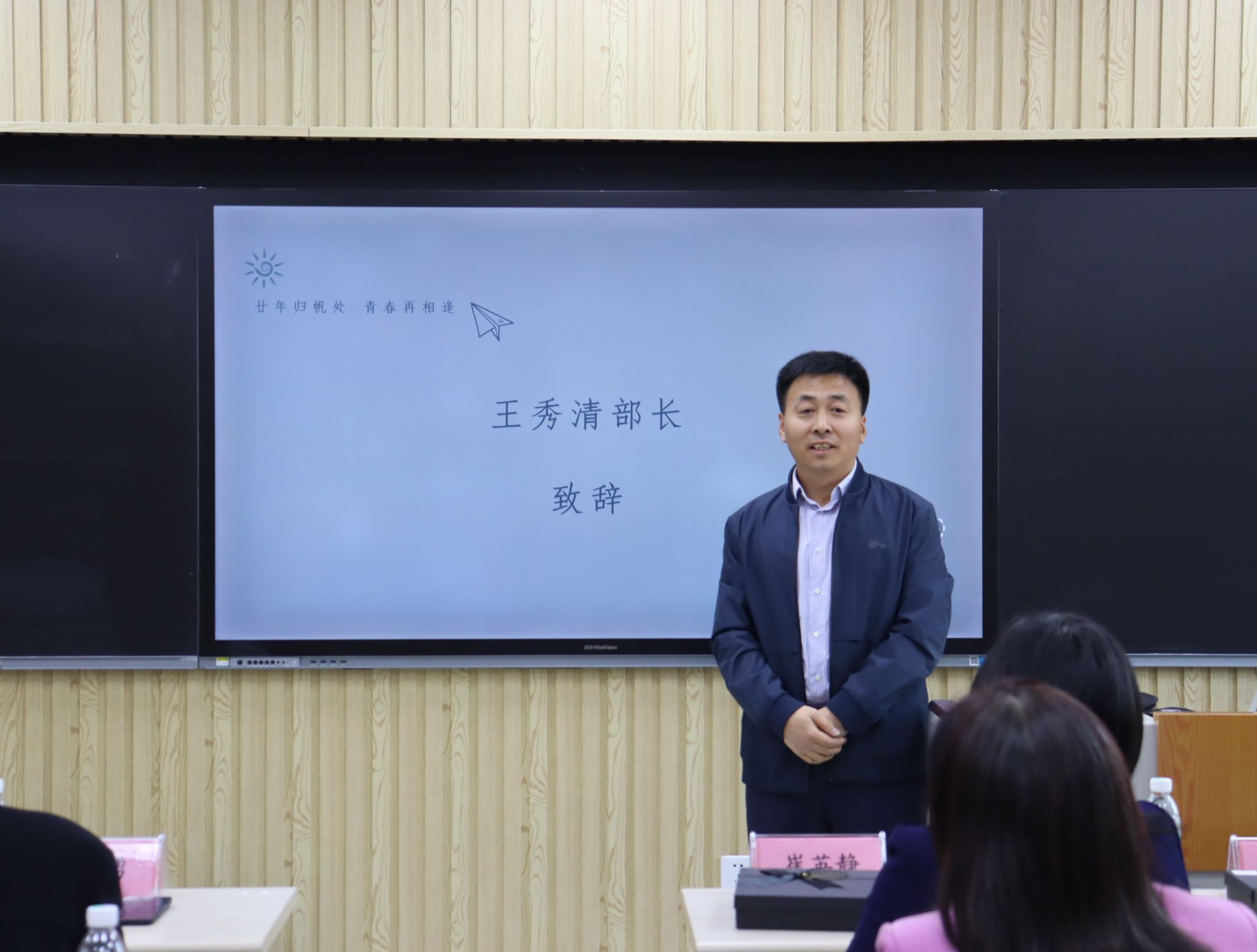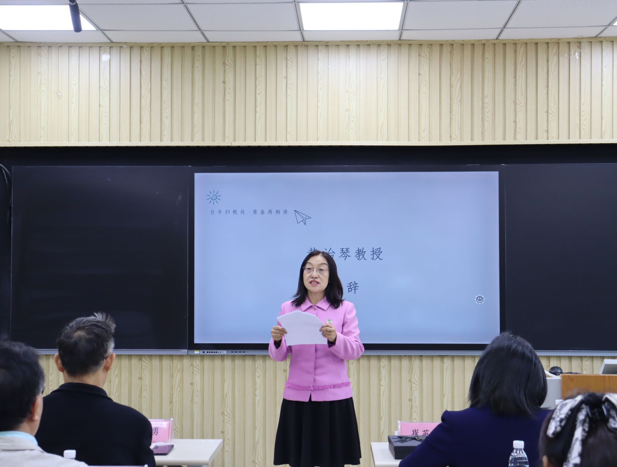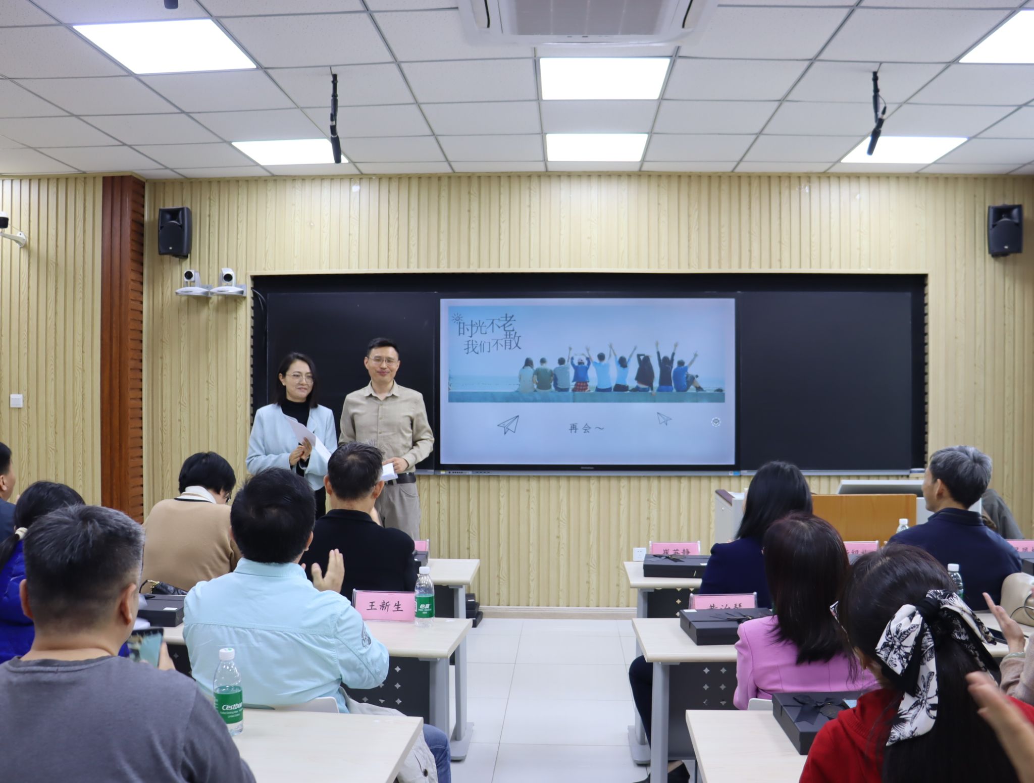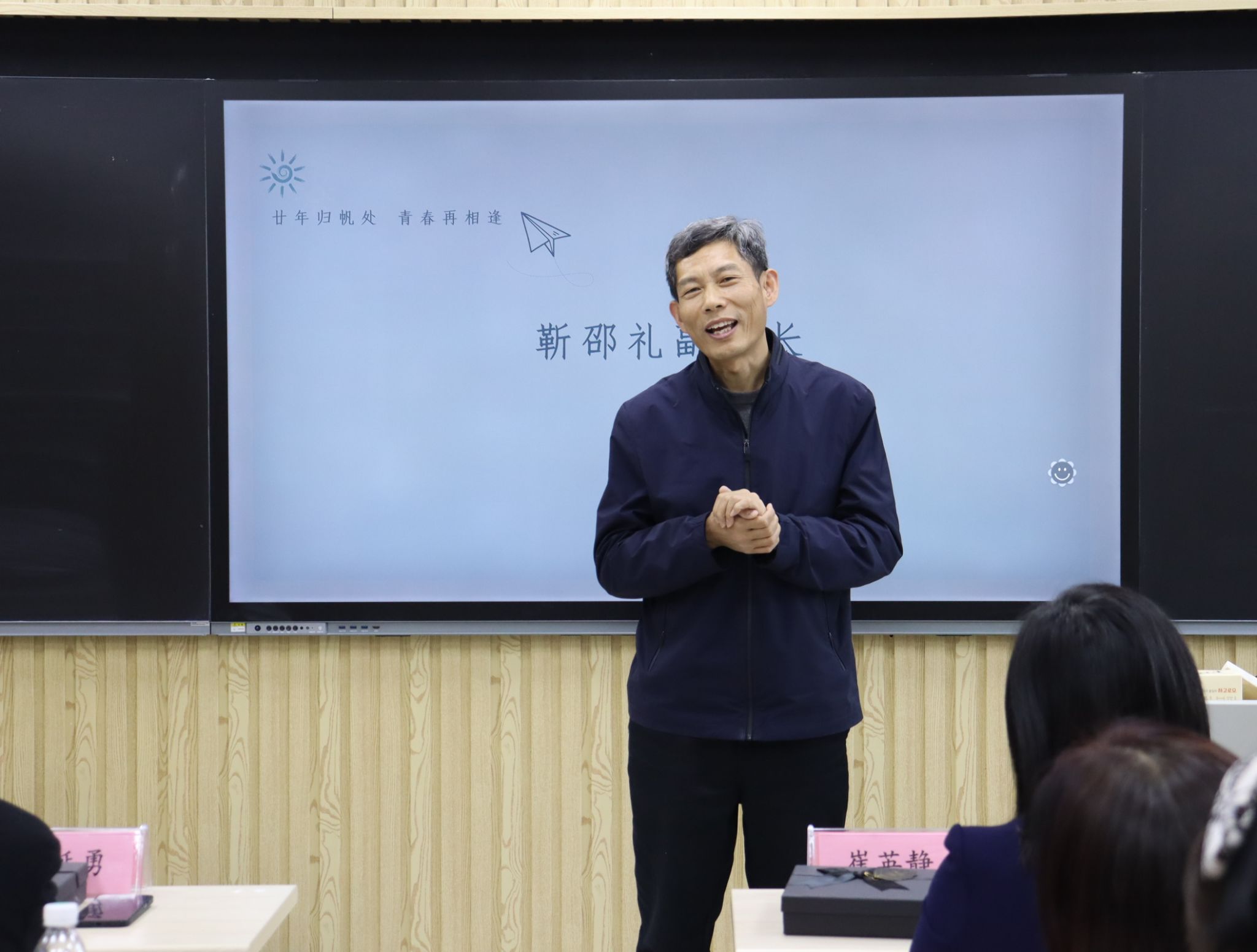 随后,在第七教学楼智慧教室举行了师生座谈会,公司领导、老师与员工们欢聚一堂,共叙旧情。公司党委书记崔英静代表公司对员工们返校表示热烈欢迎,介绍了公司近年来的发展建设情况,并感谢员工们长期以来对母校的关心和支持,真诚希望各界员工持续关注公司动态,助力公司高质量发展。与会领导、老师逐一为员工们送上衷心的祝福。员工们深情回顾师生间的深厚情谊和同窗间的难忘岁月,感恩老师们的辛勤教导和母校的精心培养。座谈会欢声笑语不断,热烈的掌声经久不息,处处涌动着浓浓的师生情谊和同窗之谊。