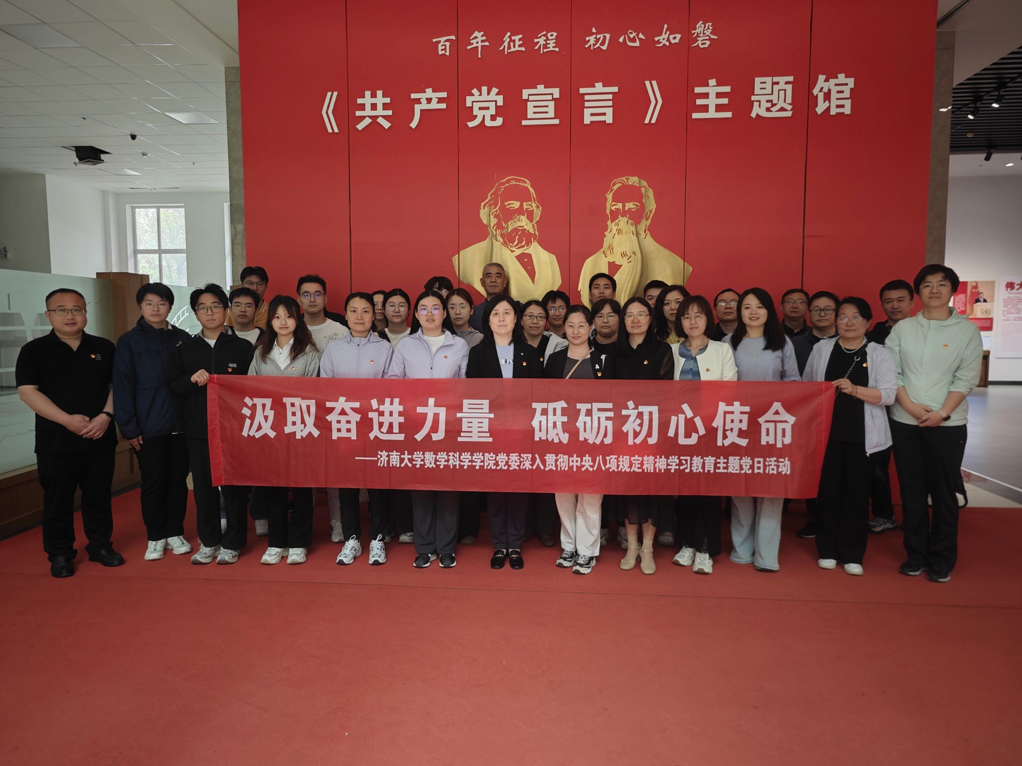 为深入学习习近平新时代中国特色社会主义思想,强化党员政治意识,在实践中锤炼党员党性,推进深入贯彻中央八项规定精神学习教育走深走实,公司党委于4月30日上午在山东交通公司《共产党宣言》展馆开展“汲取奋进力量 砥砺初心使命”深入贯彻中央八项规定精神学习教育主题党日活动,通过沉浸式研学、重温入党誓词、感悟思想伟力,进一步坚定理想信念、凝聚奋进力量。公司师生党员代表40余人参加,活动由公司党委书记崔英静主持。