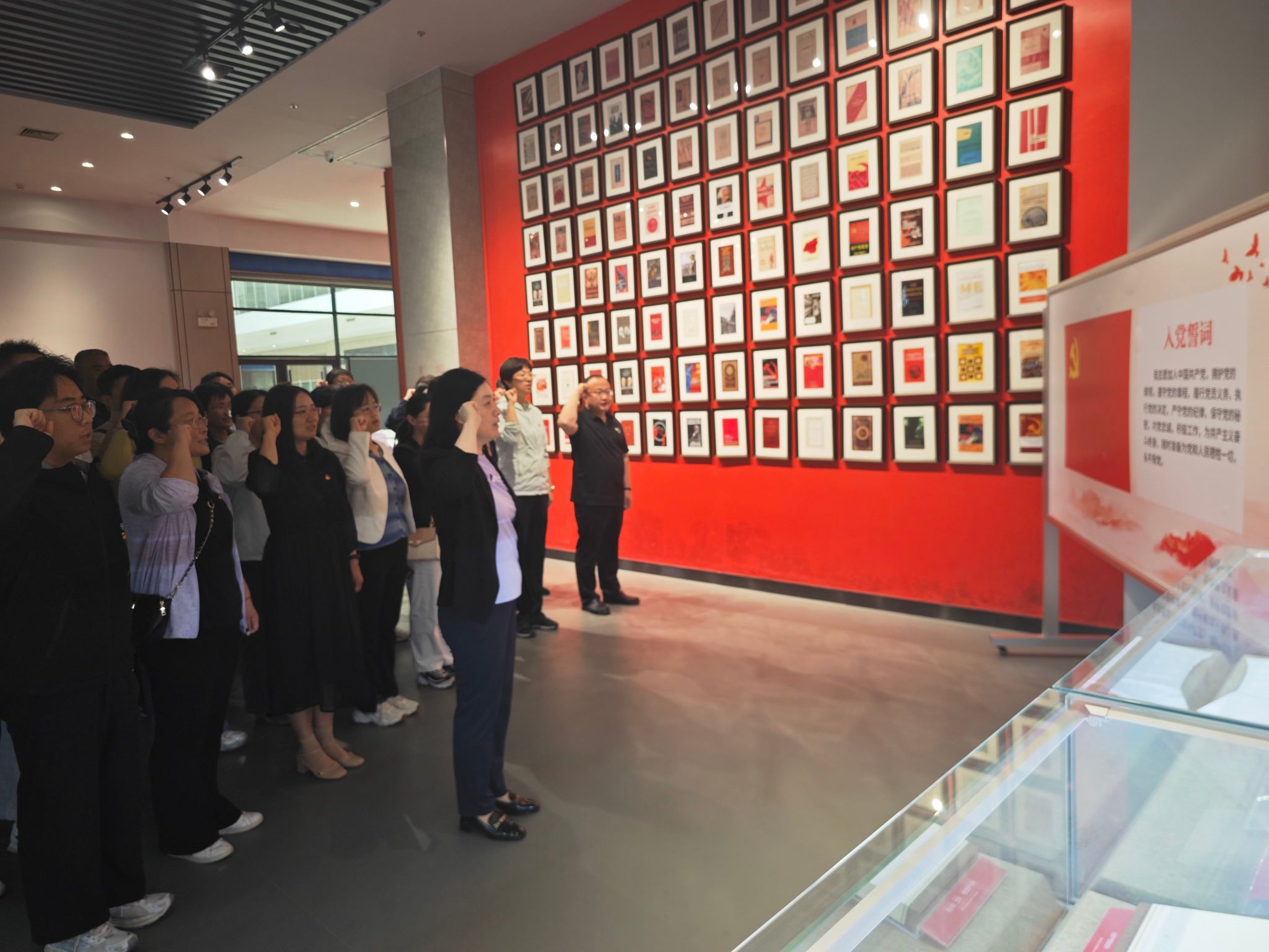 在展馆讲解员的引导下,党员们依次观摩了“宣言问世”“大道行远”“日出东方”“砥砺奋进”和“伟大复兴”五个部分,感悟真理光辉,汲取精神力量。展馆内陈列了多个版本的《共产党宣言》珍贵文献、中国共产党成立初期的重要历史图片与实物,以及中国共产党人践行初心使命的生动故事。通过一幅幅图片、一件件文物,师生党员们系统了解了《共产党宣言》的诞生背景、传播历程及其对中国革命和建设的深远影响,深刻感悟马克思主义真理力量与中国化时代化的伟大实践成就。在鲜红的党旗下,全体党员庄严举起右拳,重温入党誓词。铿锵有力的誓言回响在展馆内,彰显了新时代共产党员的坚定信念与责任担当。师生党员还参观了山东交通公司汽车文化博物馆。