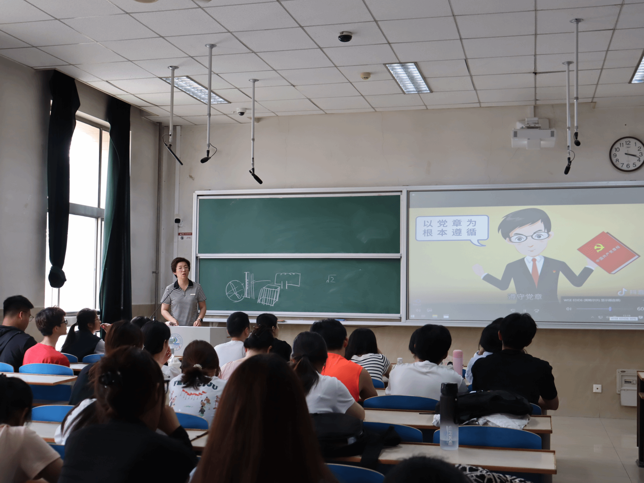活动伊始,张沂红系统阐明“什么是入党积极分子”,并进一步指出入党积极分子应该如何定位自己的身份。她结合身边实例,强调定位不是以成绩为唯一标准,而是基于对入党意愿、政治素养、是否全心全意为人民服务等方面的综合考虑。随后她从入党积极分子的作用及发挥途径、中央八项规定精神的要点等方面展开,明确对入党积极分子的要求。着重强调入党积极分子要通过学习和实践不断增强“四个意识”、坚定“四个自信”、做到“两个维护”。鼓励大家以更高的标准律己,在学习、生活中发挥模范带头作用。最后,张沂红带领同学们学习党章新修订内容,引导同学们将党章要求融入点滴实践中。